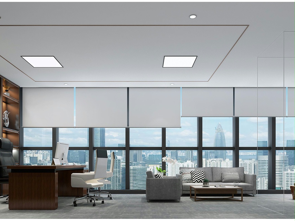 獨(dú)立辦公間以其個(gè)性突出而成為整個(gè)辦公室裝飾設(shè)計(jì)中一道風(fēng)景線。新中式風(fēng)格在董事長辦公室中是最常見的,從辦公桌到茶桌,高級(jí)灰的沙發(fā)給這個(gè)空間提供時(shí)尚感。