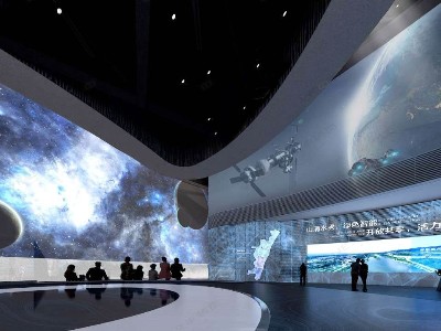 大面積的暗色調(diào)和超大顯示屏的組合能很好地烘托出深邃宏偉的展廳環(huán)境氛圍,專業(yè)展廳裝修設計公司在裝飾展廳時,會運用展覽展示燈與嵌入式燈帶設計的搭配,埋藏的隱形燈帶設計起到了視覺引導的作用,加深了空間布局的縱深感。同時,LED顯示屏的動畫展示補充了展示空間的視覺單一性,通過大氣而醒目的動態(tài)信息展示,豐富了視覺感官的層次感受,更能加強訪客對品牌的認知效應。同時也增強了信息的承載量,相比信息可視化設計的圖文形式,利于觀者對展示內(nèi)容保持視線聚焦,能讓參觀者對展示內(nèi)容有著更清晰直觀的了解。
