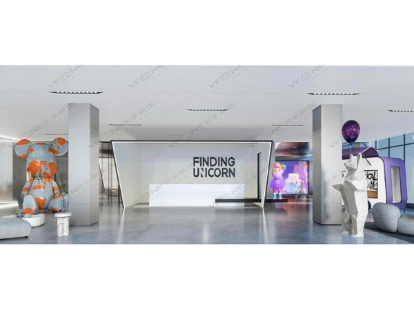 空曠的前廳以及大面積的銀白色,使人感受到辦公環(huán)境應(yīng)有的簡(jiǎn)約感。時(shí)尚的IP形象擺件凸顯出公司前衛(wèi)的審美,局部的高飽和色彩既不會(huì)破壞高級(jí)灰原有的質(zhì)感,又能很好表現(xiàn)娛樂公司應(yīng)有的活力。