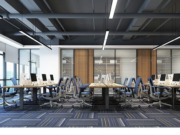 辦公室裝修設(shè)計不只是美學(xué)和材料的組織,而是功能性時代的需求和向往美好體驗(yàn)的交互。辦公空間裝飾以黑色、深藍(lán)為主打色調(diào),搭配同一色系條紋地板,既統(tǒng)一又和諧,構(gòu)建出一個生氣勃勃的辦公空間。