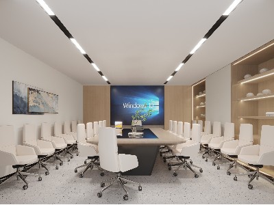吸頂燈帶將頂層空間收納得非常清爽,多媒體屏幕搭配演講設(shè)備,以便于配合工作探討時宣講介紹,更適合現(xiàn)代高效而快節(jié)奏的培訓(xùn)室功能調(diào)性。