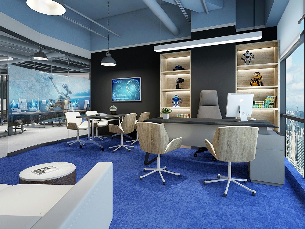 科技IT型企業(yè)采用大量的白色與藍(lán)色進(jìn)行顏色搭配,既符合此公司的要求,也達(dá)到了科技,時(shí)尚的感覺。臺(tái)頂部的天臺(tái)采用工業(yè)風(fēng)設(shè)計(jì),工業(yè)風(fēng)與科技感的結(jié)合是這個(gè)深圳總經(jīng)理辦公室裝修設(shè)計(jì)一個(gè)新亮點(diǎn)。