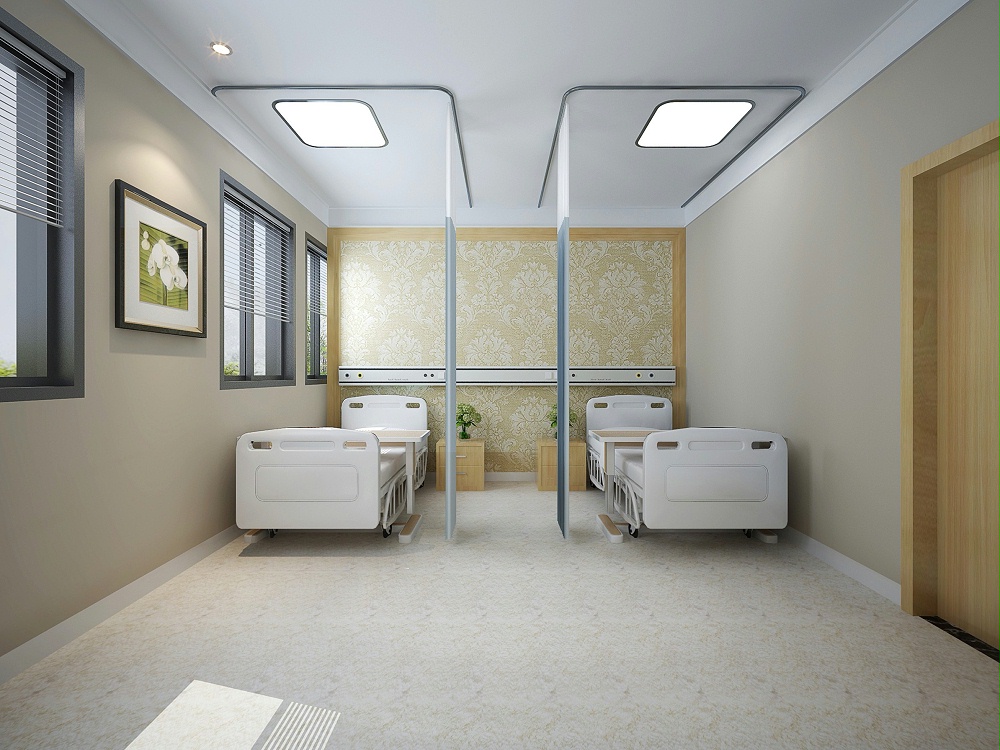 病房裝修設(shè)計(jì)以淺色調(diào)為主,旨在營(yíng)造一個(gè)清新,內(nèi)斂,優(yōu)雅,舒適的休息調(diào)養(yǎng)空間。對(duì)裝飾與色彩的節(jié)制,簡(jiǎn)約而平靜,以本真的優(yōu)雅構(gòu)設(shè)精神的寧謐地帶,能夠讓病人在這個(gè)空間得以安靜寬心。
