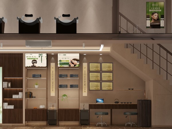 整體色相統(tǒng)一的色彩搭配,配合具有視覺引導性的燈光效果,讓顧客對座位區(qū)有一目了然的心理感受,在簡潔的空間配色中巧妙地做到設計匹配功能屬性的清晰感。在整體空間布局上要做到摒棄更多華而不實的復雜裝飾,沒有過多復雜的造型設計,室內的整體色彩簡單明快,做到裝潢方式美觀大氣,在安靜的環(huán)境下,私人美護的時間得到充分的尊貴體驗。