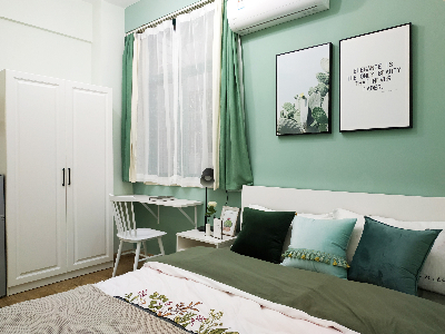 整個公寓以綠色為主色調(diào),淡漠綠中注入一抹清新淡雅的灰豆綠,帶來一個極簡的生活美境,透著一股清新活潑的氣息,讓人仿佛置身于治愈系的綠色森林之中。樹枝形吊燈、金屬質(zhì)感擺件、純白色家具等的使用,增添了空間的層次性和豐富感,讓居室更有藝術的氣息。 深圳公寓裝修公司
